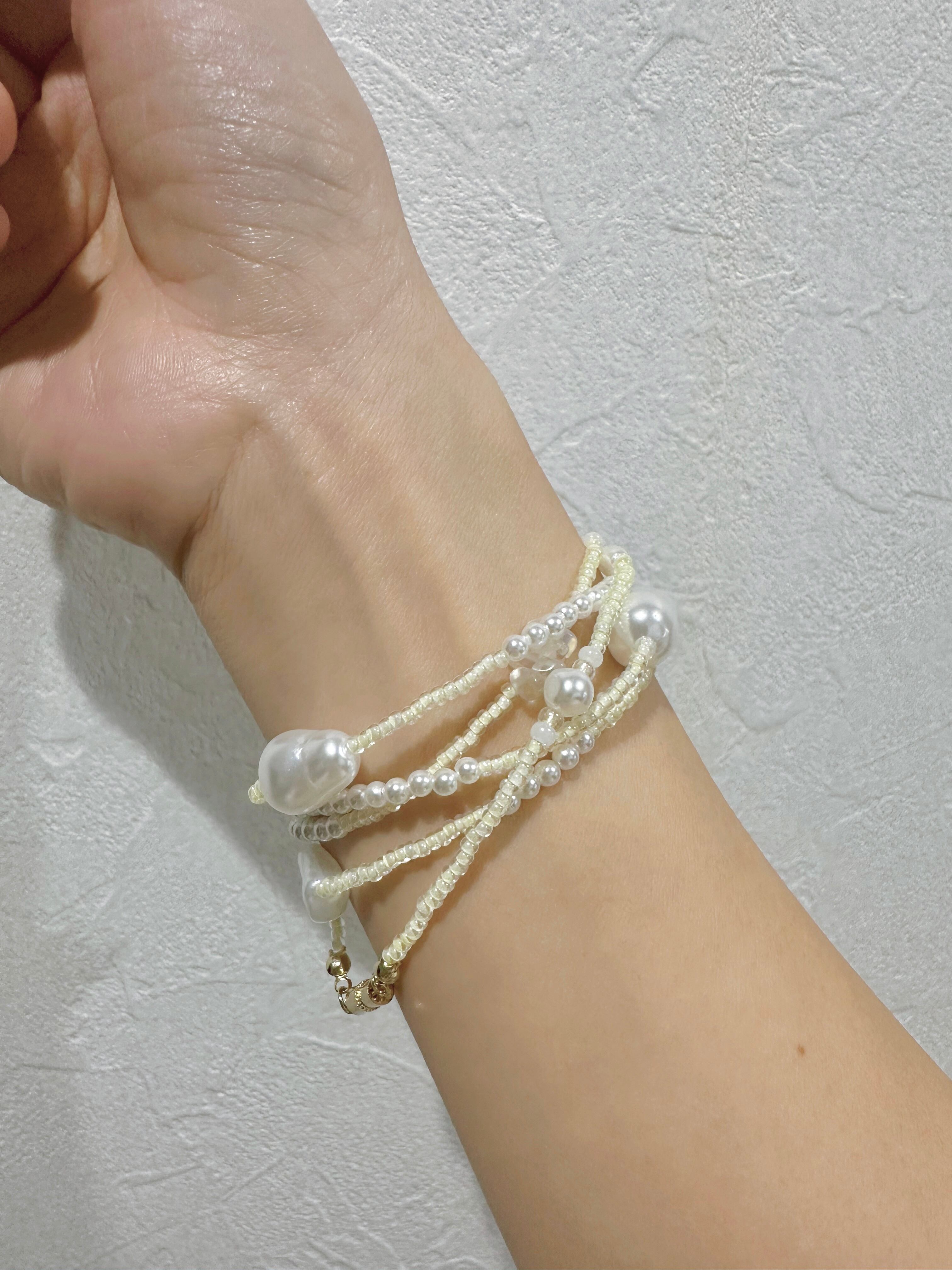 ニュアンスビーズ3wayネックレス|ロング80cm|2連・ブレスレット対応|marscot