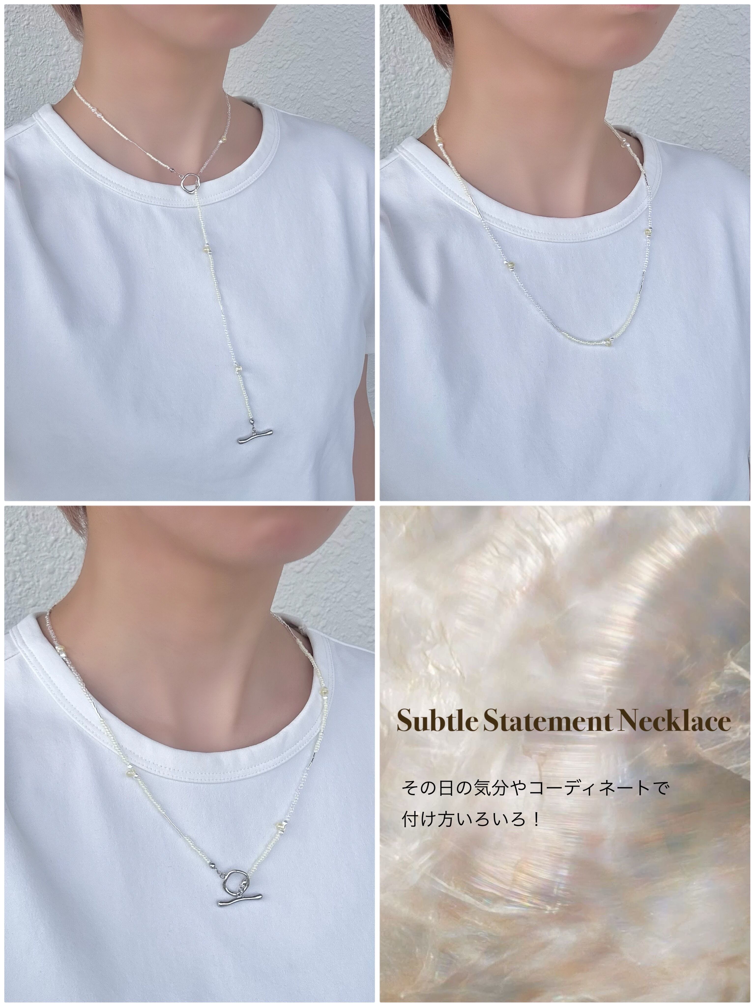 ※3枚目のコラージュ写真は付け方の説明写真です。着用しているネックレスのカラーは商品と異なります。